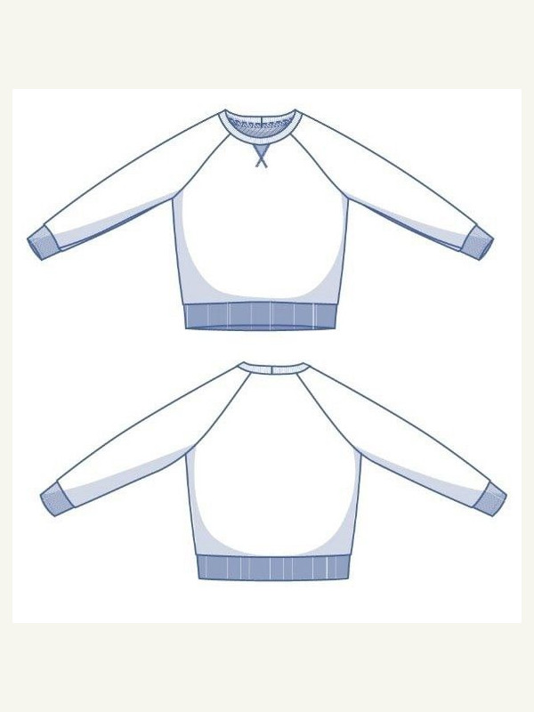 Molde de moletom/blusa de malha feminina, tamanhos XS–XXXL