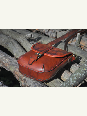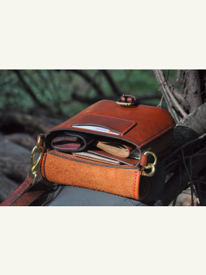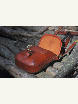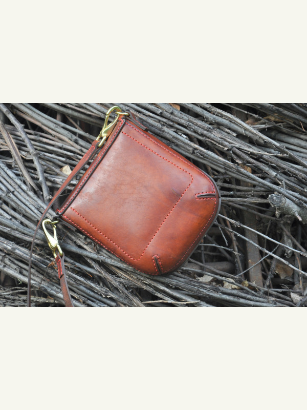 Bolsinha pequena. Peças principais: couro yuft (krast) 2,6–2,8 mm, da Mogilevskaya. Viés diagonal: 1,4–1,6 mm.
