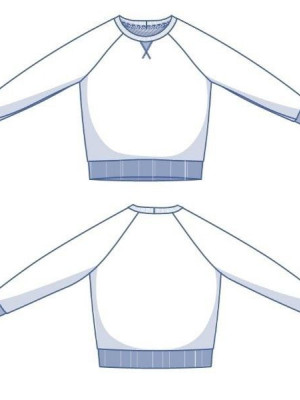 Molde de moletom/blusa de malha feminina, tamanhos XS–XXXL