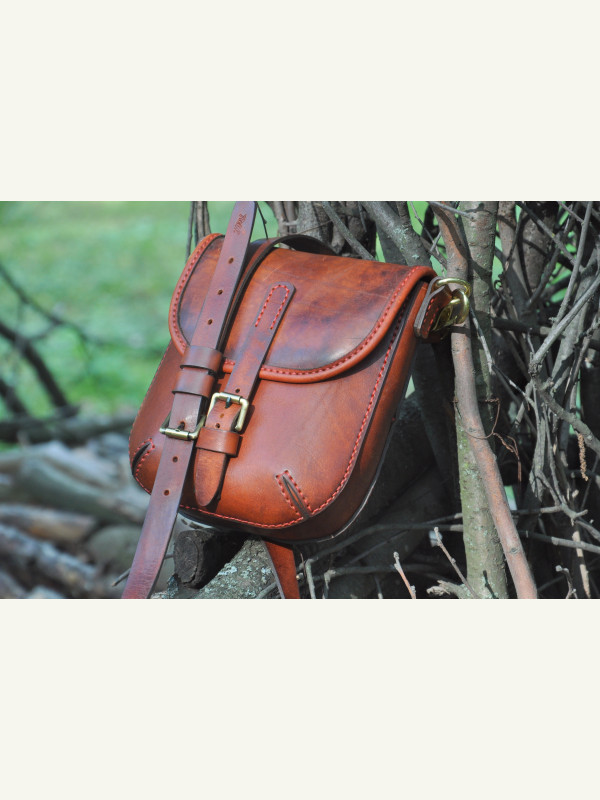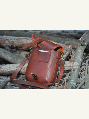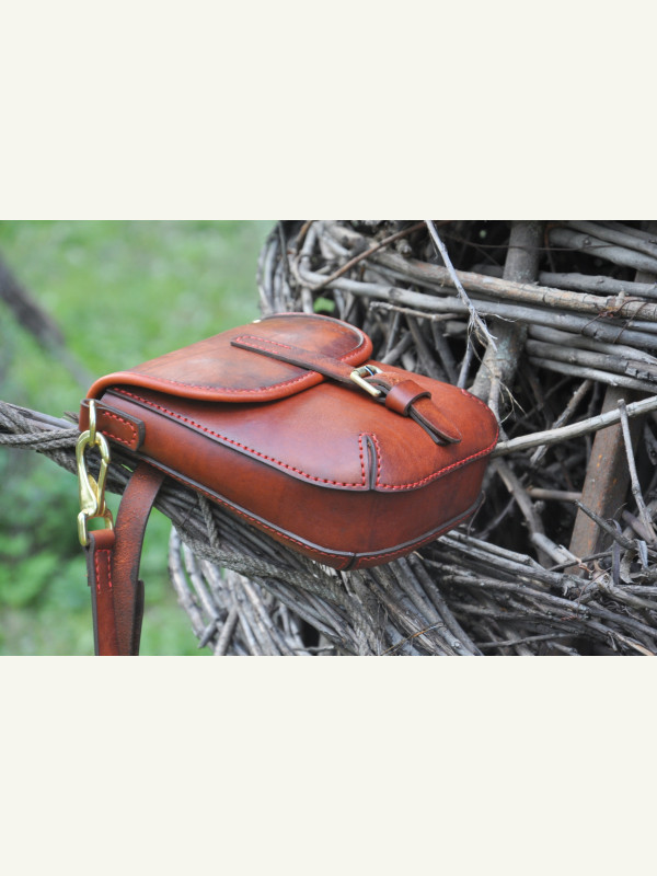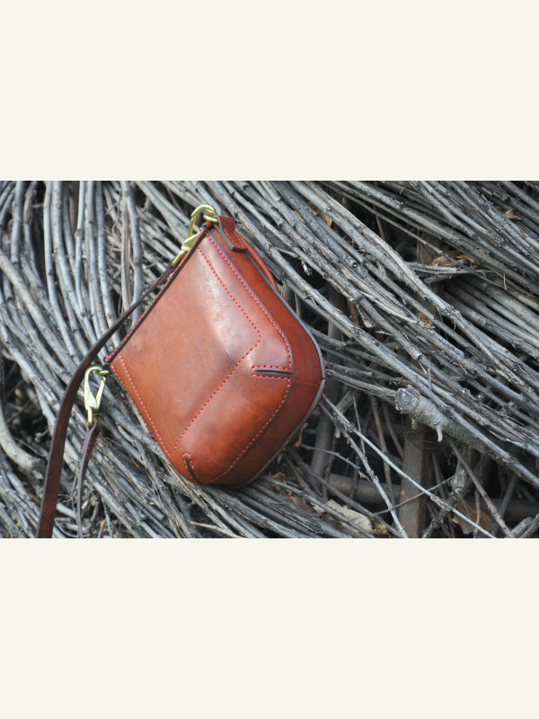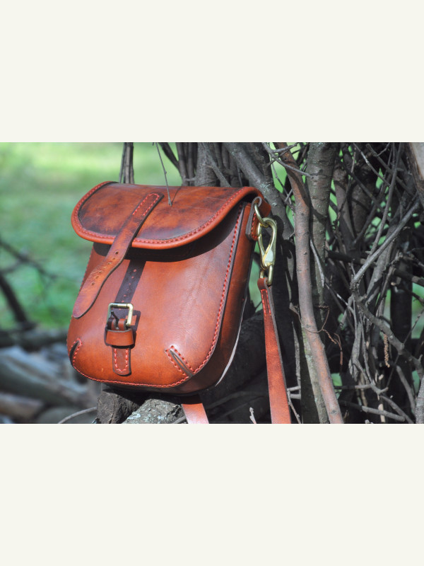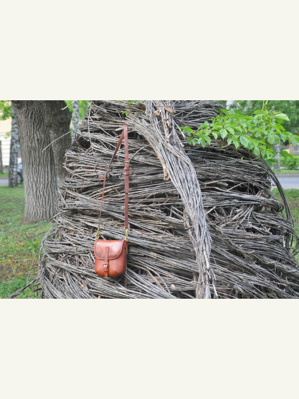 Bolsinha pequena. Peças principais: couro yuft (krast) 2,6–2,8 mm, da Mogilevskaya. Viés diagonal: 1,4–1,6 mm.